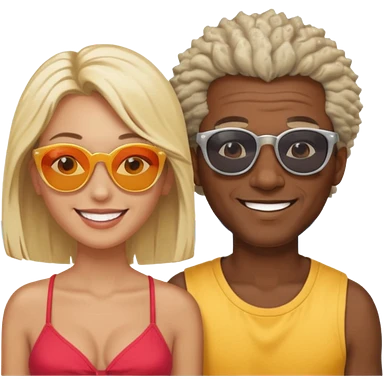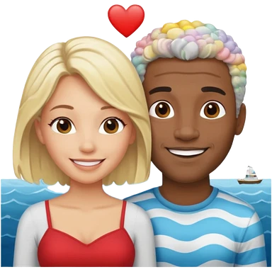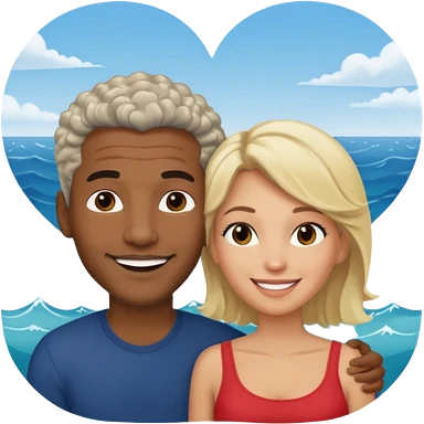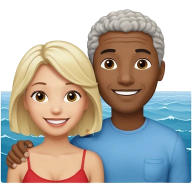 Black man salt n pepper hair smiling with blonde in love at ocean emoji