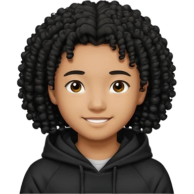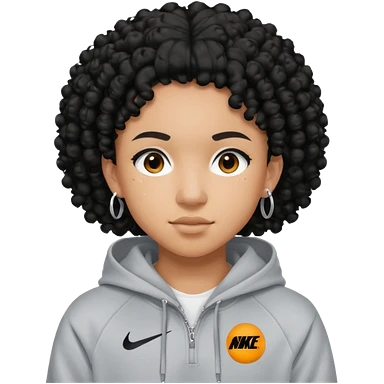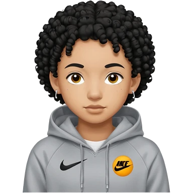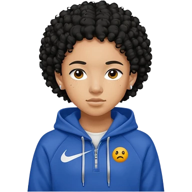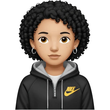 Blasian teenager wearing a nike hoodie with black curly hair and ears pierced emoji