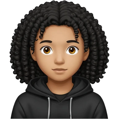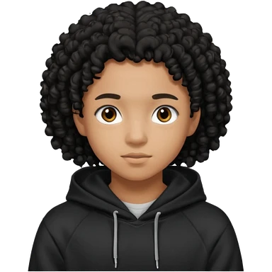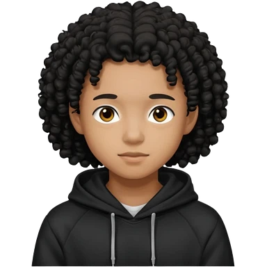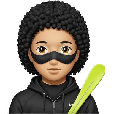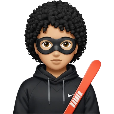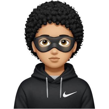 Blasian teenager wearing a hoodie with black curly hair and nike ski mask emoji