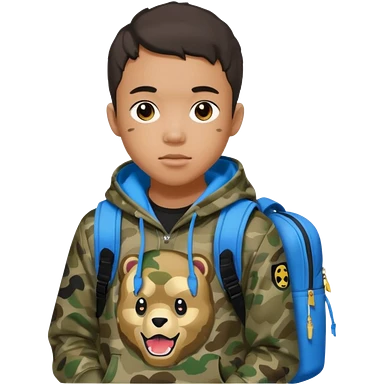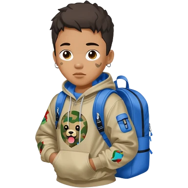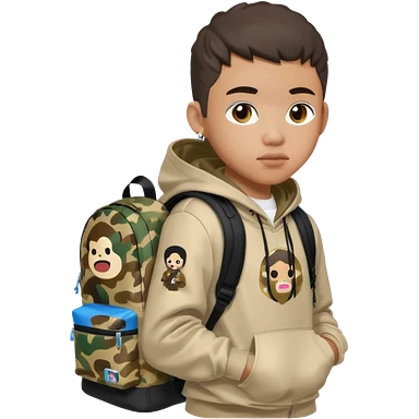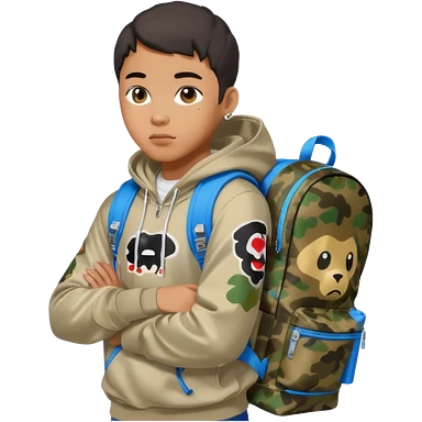 blasian teenager with bape hoodie and sprayground backpack emoji