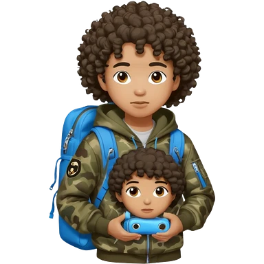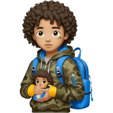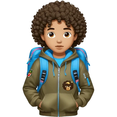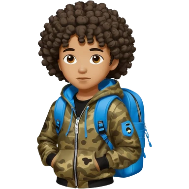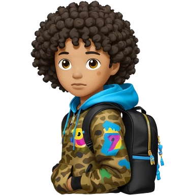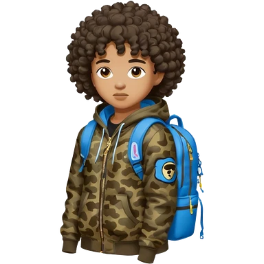 blasian teenager with curly hair, and bape x sprayground hoodie and sprayground backpack emoji