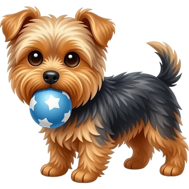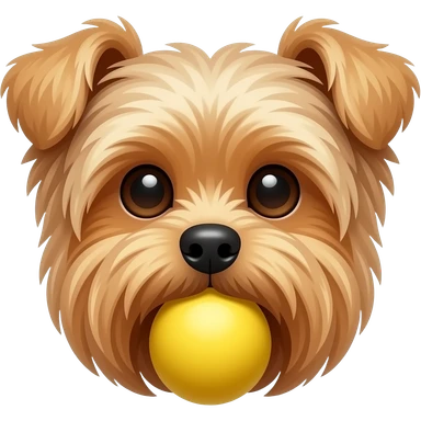 Droopy ear yorkie face with yellow ball in mouth emoji