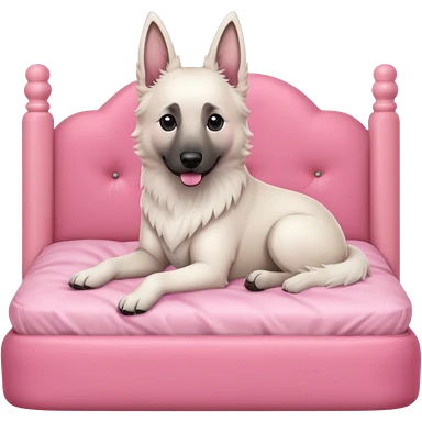 White belgian Shepard sit in a pink bed emoji