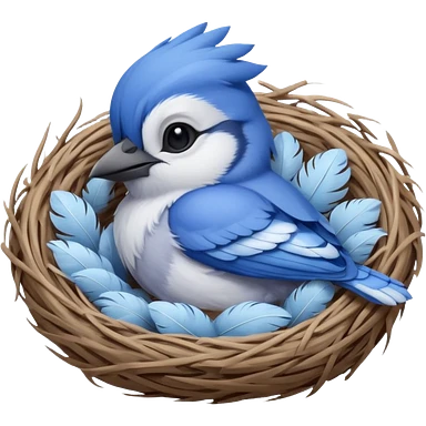 baby bluejay bird, sleeping in nest, with blue jays baseball hat emoji | AI Emoji Generator