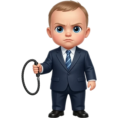 "Create a 3D emoji of Big Boss Baby with his sharp suit, slicked-back hair, and a confident, serious expression. Make it vibrant and playful, capturing his business-savvy attitude in a fun, exaggerated way!" emoji