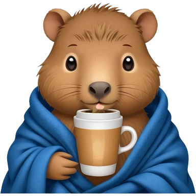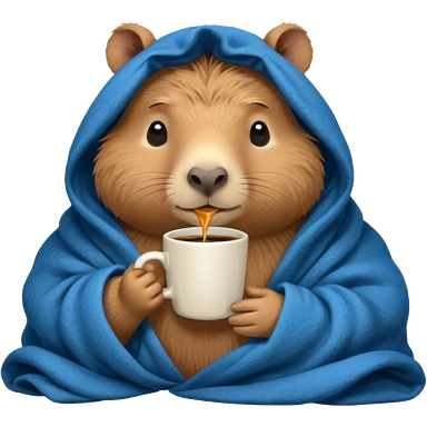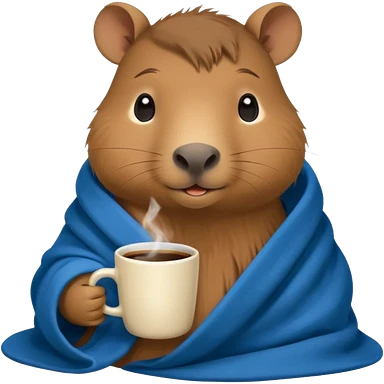 baby capypara in cozy blanket, drink coffee emoji | AI Emoji Generator