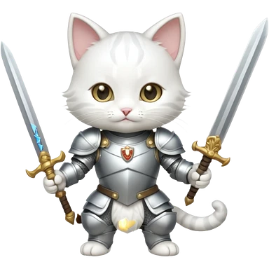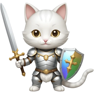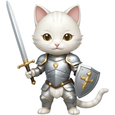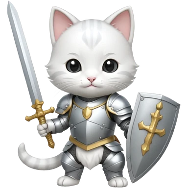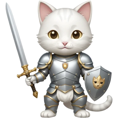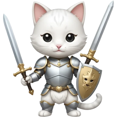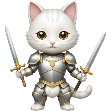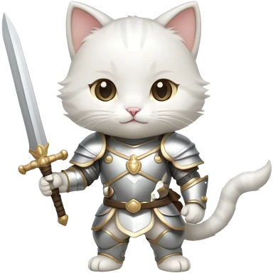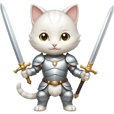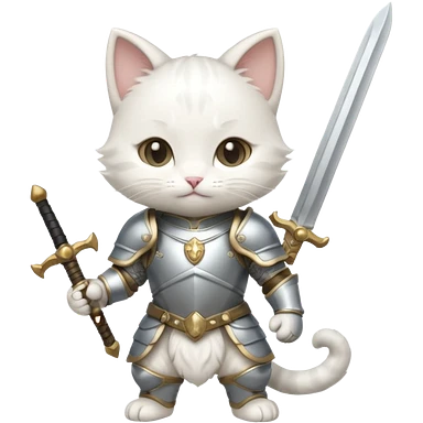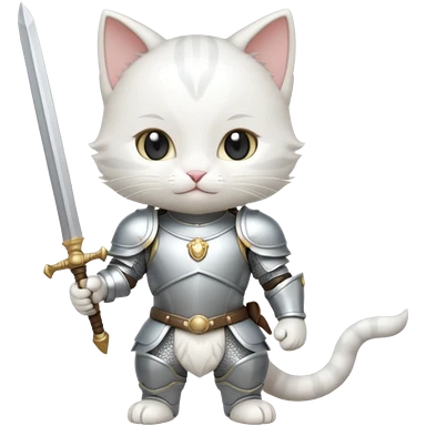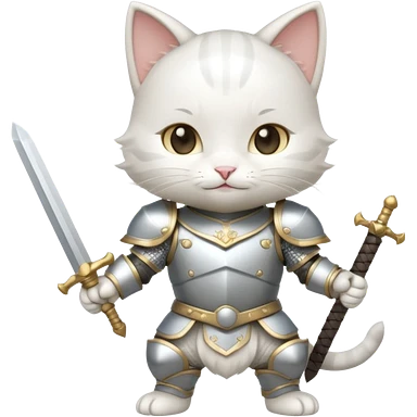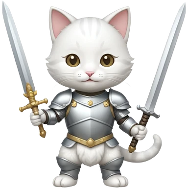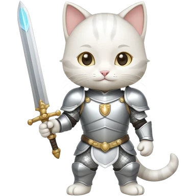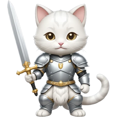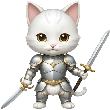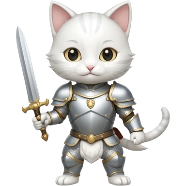 baby chibi white cat in silver armor, full body, smile, hold sword emoji | AI Emoji Generator