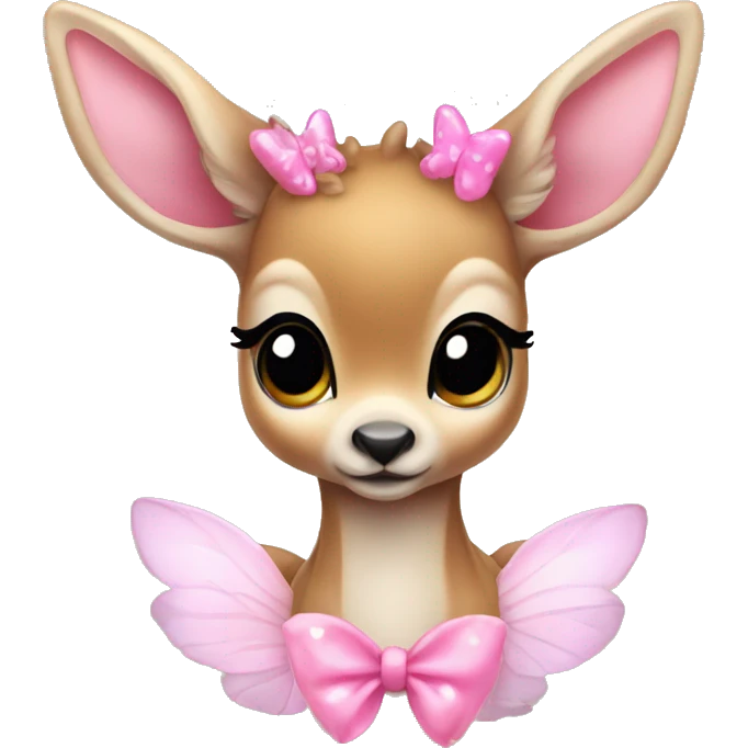 baby deer with fairy wings and a pink bow around its neck emoji | AI Emoji Generator
