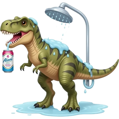 dinasour in the shower drinking alani energy drink emoji
