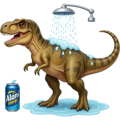 dinasour in the shower with alani energy drink emoji