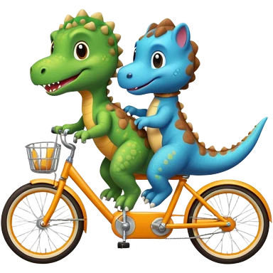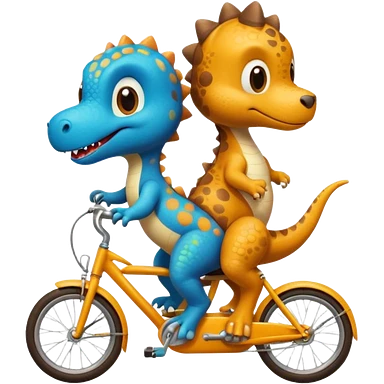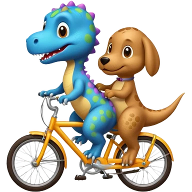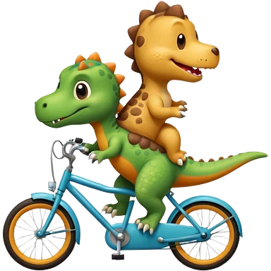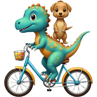 Baby dinosaur and puppy riding a retro bike emoji