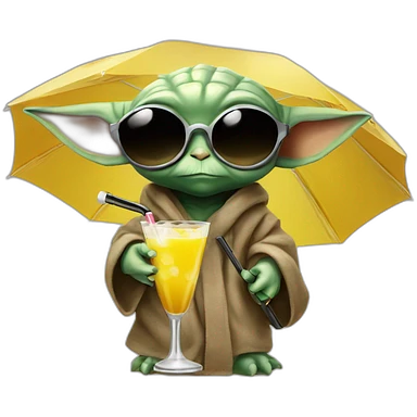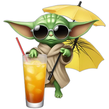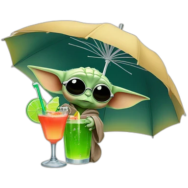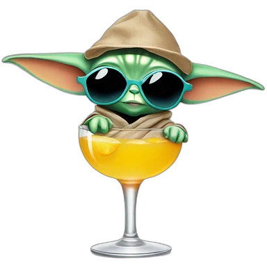 baby Yoda wearing sunglasses and drinking an umbrella cocktail emoji