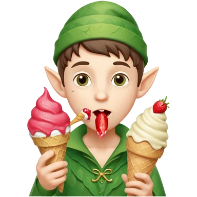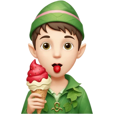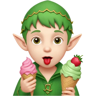 baby elf with strawberry ice cream emoji | AI Emoji Generator