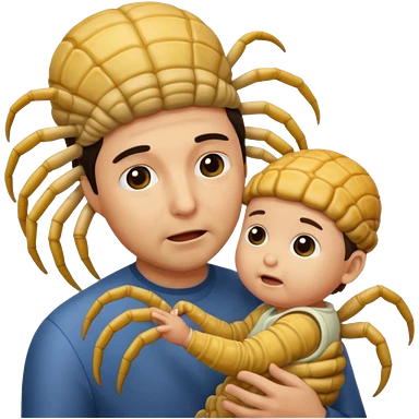 man with Baby Facehugger on his face emoji