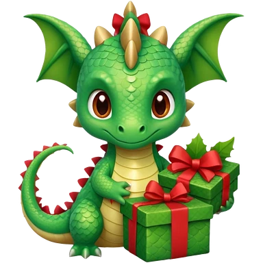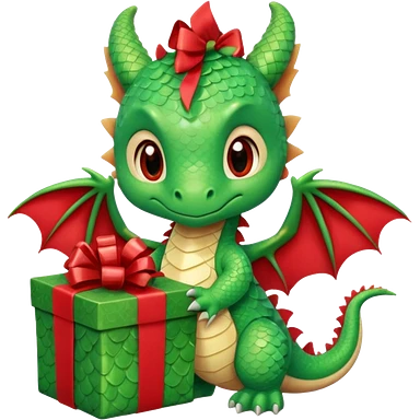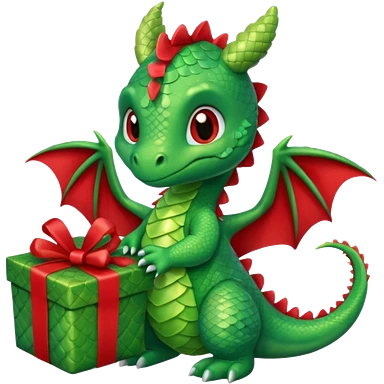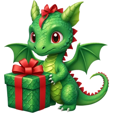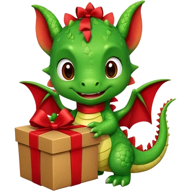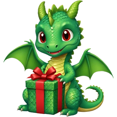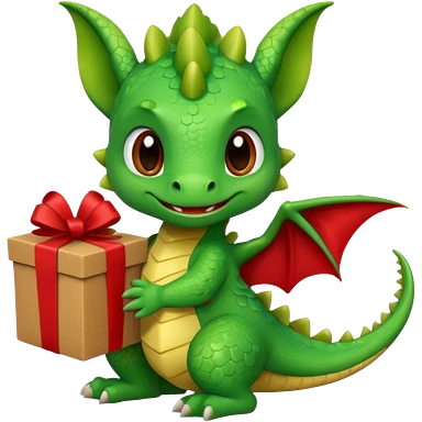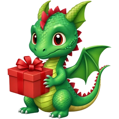 a cute baby dragon is holding a carton gift with red ribbon emoji