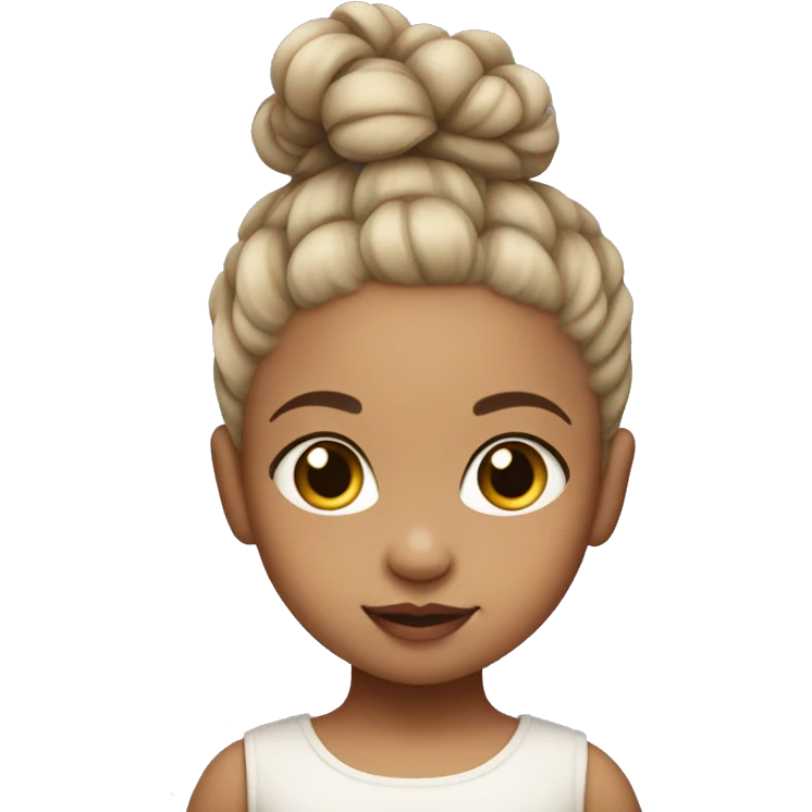 Baby girl with her hair tied up in a bun and she has white skin emoji | AI Emoji Generator