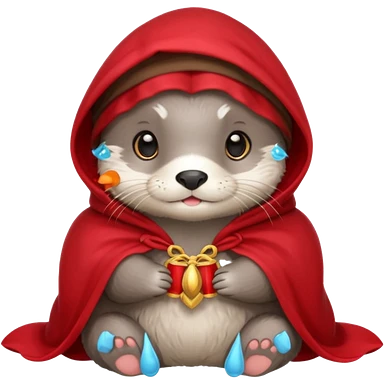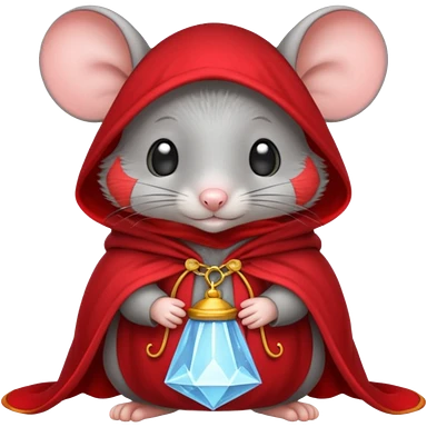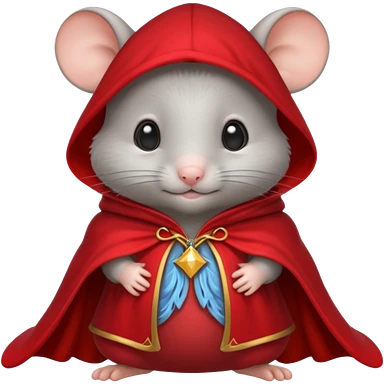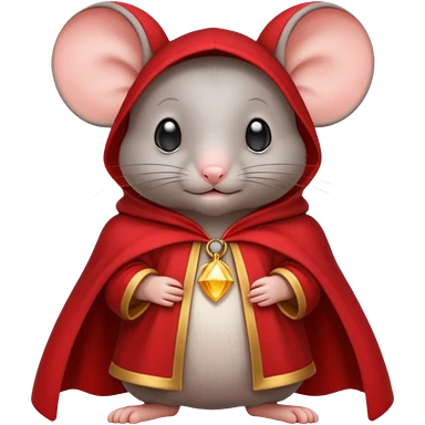 baby grey mouse, in magic red cloak emoji | AI Emoji Generator