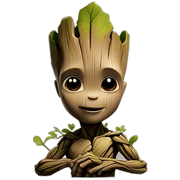 Baby Groot tree character with cute face and tiny arms emoji | AI Emoji Generator