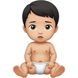 baby with chubby cheeks standing in a diaper, classic emoji look emoji