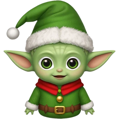 Baby joda felice con cappello da elfo vestito da babbo natale felice emoji