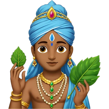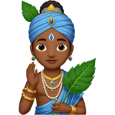 baby Krishna emoji, blue skin, sleeping peacefully on a cloud, wearing yellow clothes, peacock feather in hair emoji | AI Emoji Generator