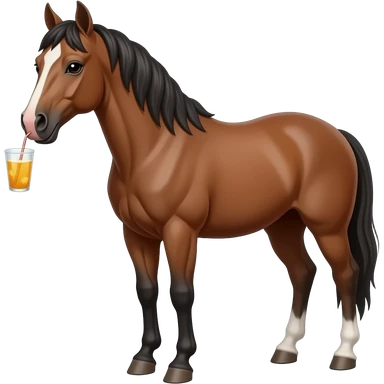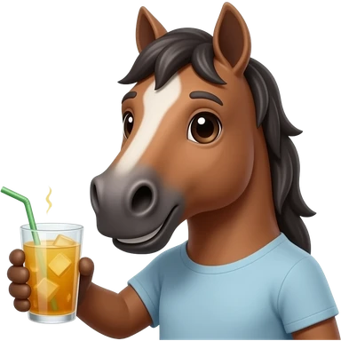 horse with half body face close up and hold drink in hand front view emoji