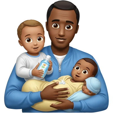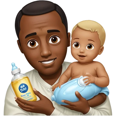 Sean “Diddy” Combs with baby oil and a very small infant and he’s pouring the baby oil on the baby and they have a scared face they’re really scared emoji