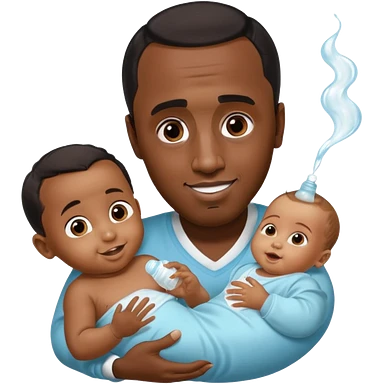 Black man in robe holding a baby and baby oil and he has sunglasses on emoji