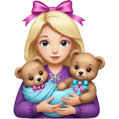 woman holding baby bears with ribbons and crystals emoji