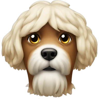 A spoodle with a brown head and brown and white patches on body emoji