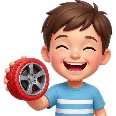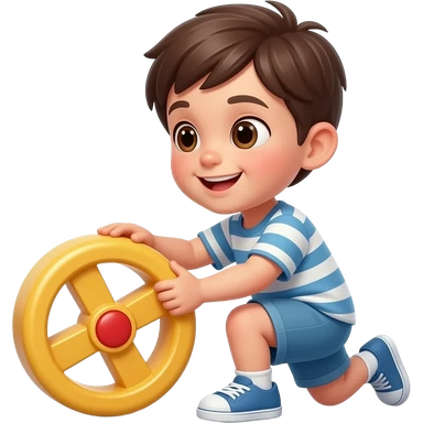 Baby Blonde hair blue eye baby playing with toy bus emoji