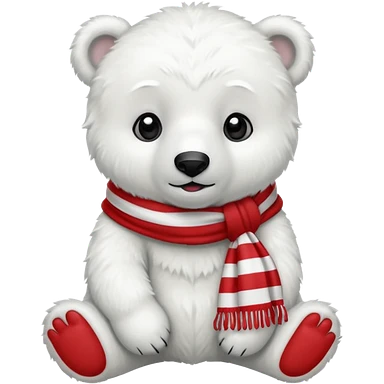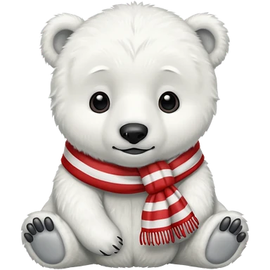 baby polar bear with red stripes scarf emoji | AI Emoji Generator