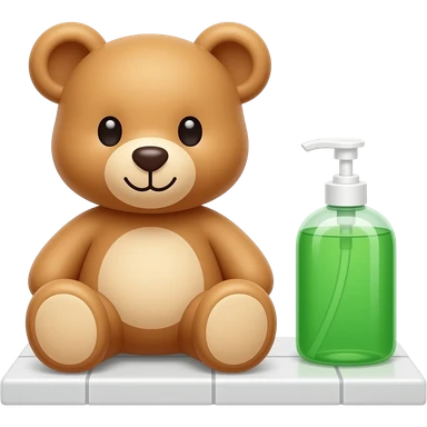 baby teddy bear next to green dish soap on a counter emoji