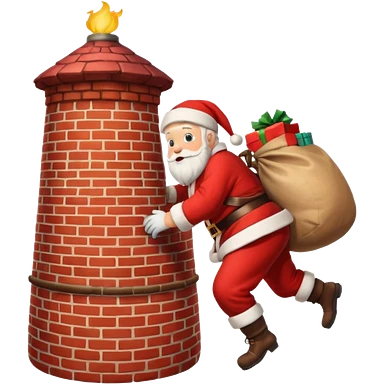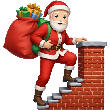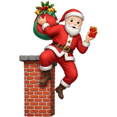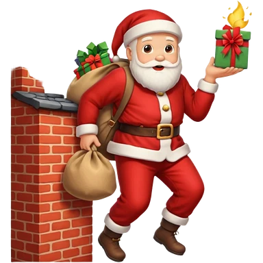 Santa Claus is carrying a bag of presents and climbing down the chimney. emoji