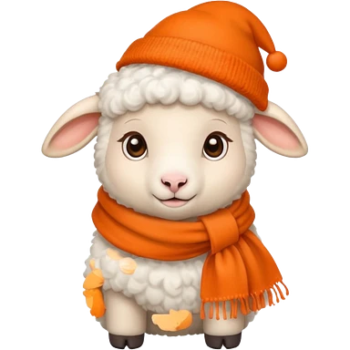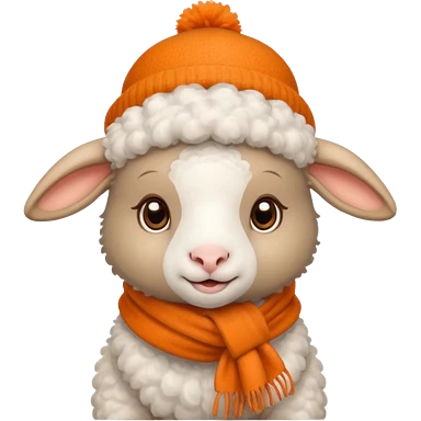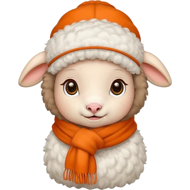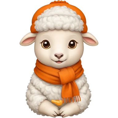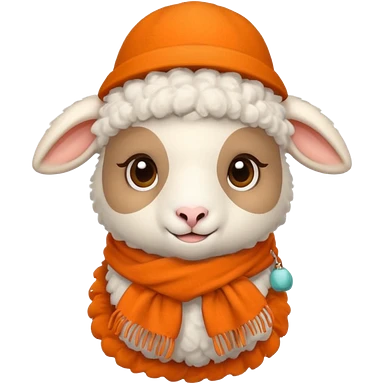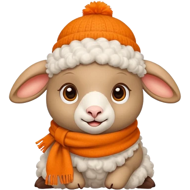 baby sheep with orange scarf and brown hat emoji