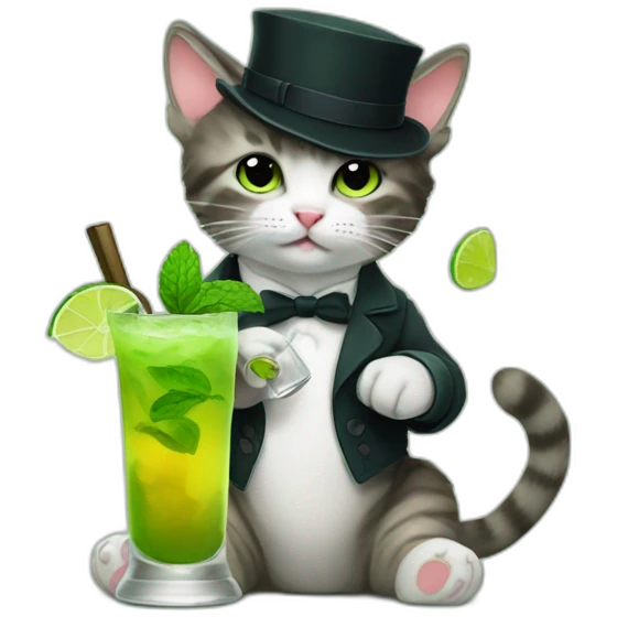 baby sherlock holmes cat drinking mojito emoji | AI Emoji Generator