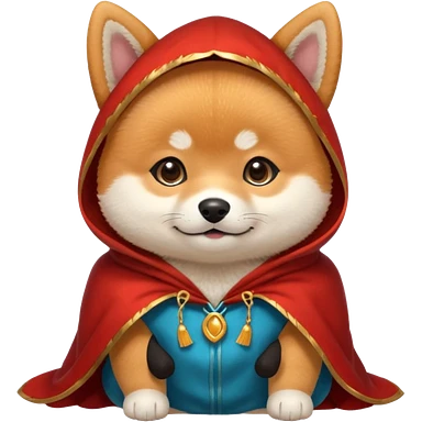 baby shiba dog, in magic red cloak emoji