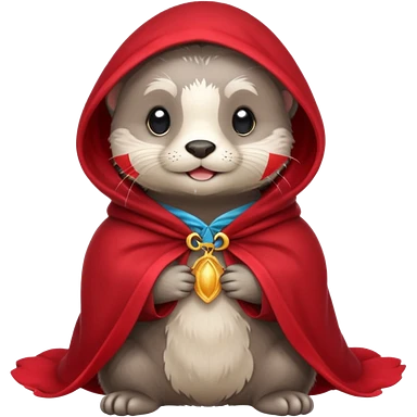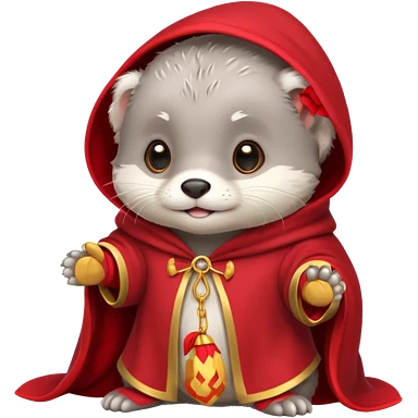 baby grey otter, in magic red cloak emoji