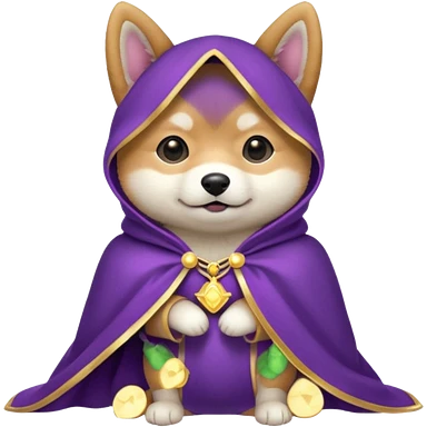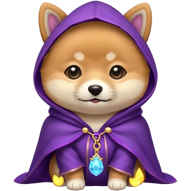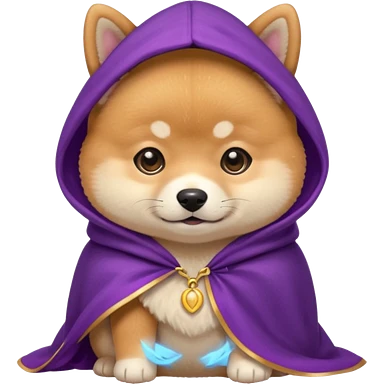 baby shiba dog, in magic purple cloak emoji | AI Emoji Generator