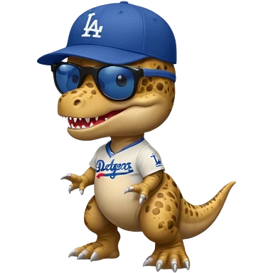 Baby T-Rex wearing sunglasses and an L.A. Dodgers baseball cap emoji