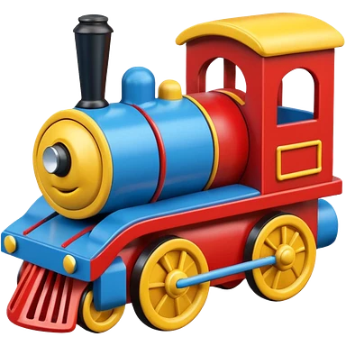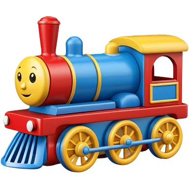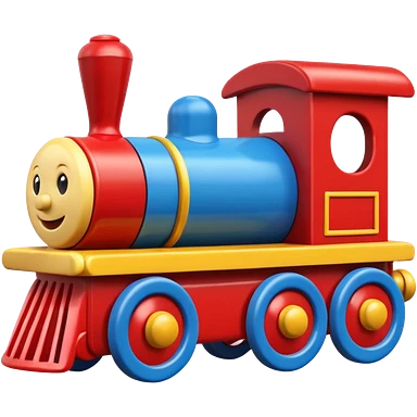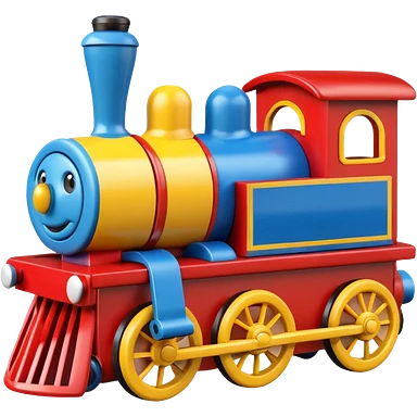 A colorful toy train engine with a big happy smiling face on the front emoji