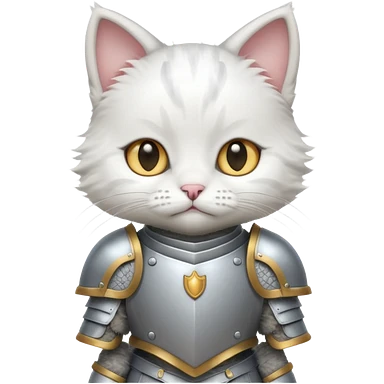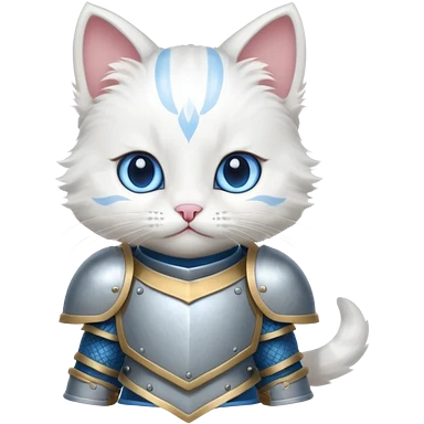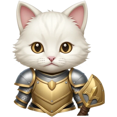 baby chibi white cat in silver armor, full body, smile, hold sword emoji