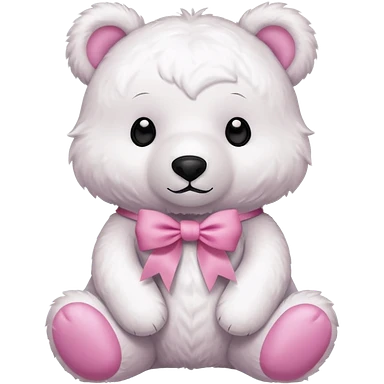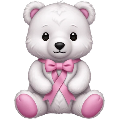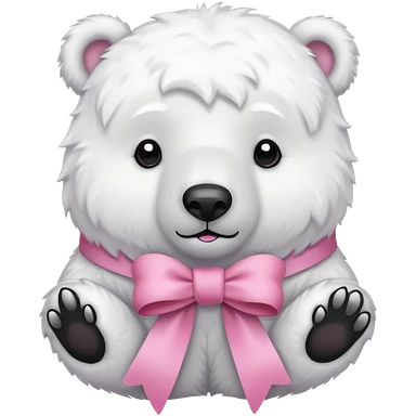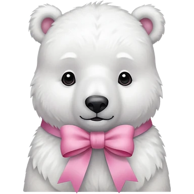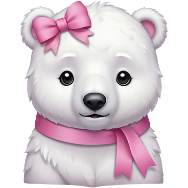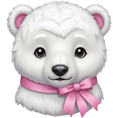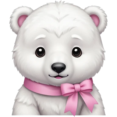 baby white polar bear with pink ribbon emoji | AI Emoji Generator