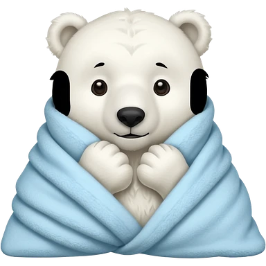 baby white polar in cozy blanket, drink coffee emoji | AI Emoji Generator