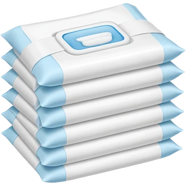 soft pastel blue rectangular pack of baby wipes, slightly puffed, semi-open plastic lid, one white wipe pulled out, no branding or extra design, soft lighting, subtle shadows, emoji scale emoji