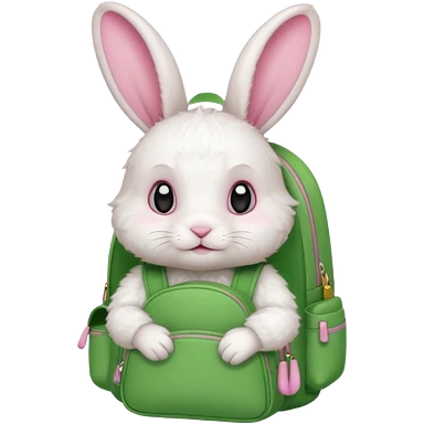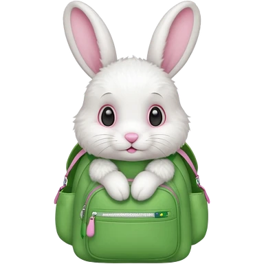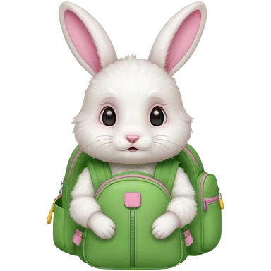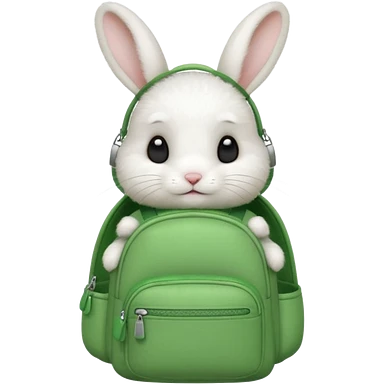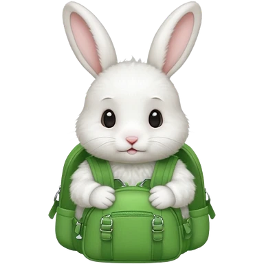 babywhite rabbit wear green backpack emoji | AI Emoji Generator