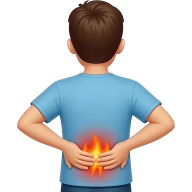 back pain, red glow on lower back, fair-skinned woman, ash brown brows, ash light brown hair tied back, slim athletic body, black workout set emoji