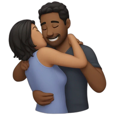 Woman and man brunette back hug emoji