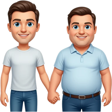 Two men holding hands. One is skinny, the other is fat. emoji