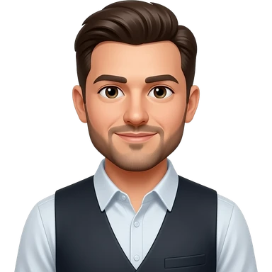 Standing men with slick back hair, beard, blue eyes, brown hair emoji